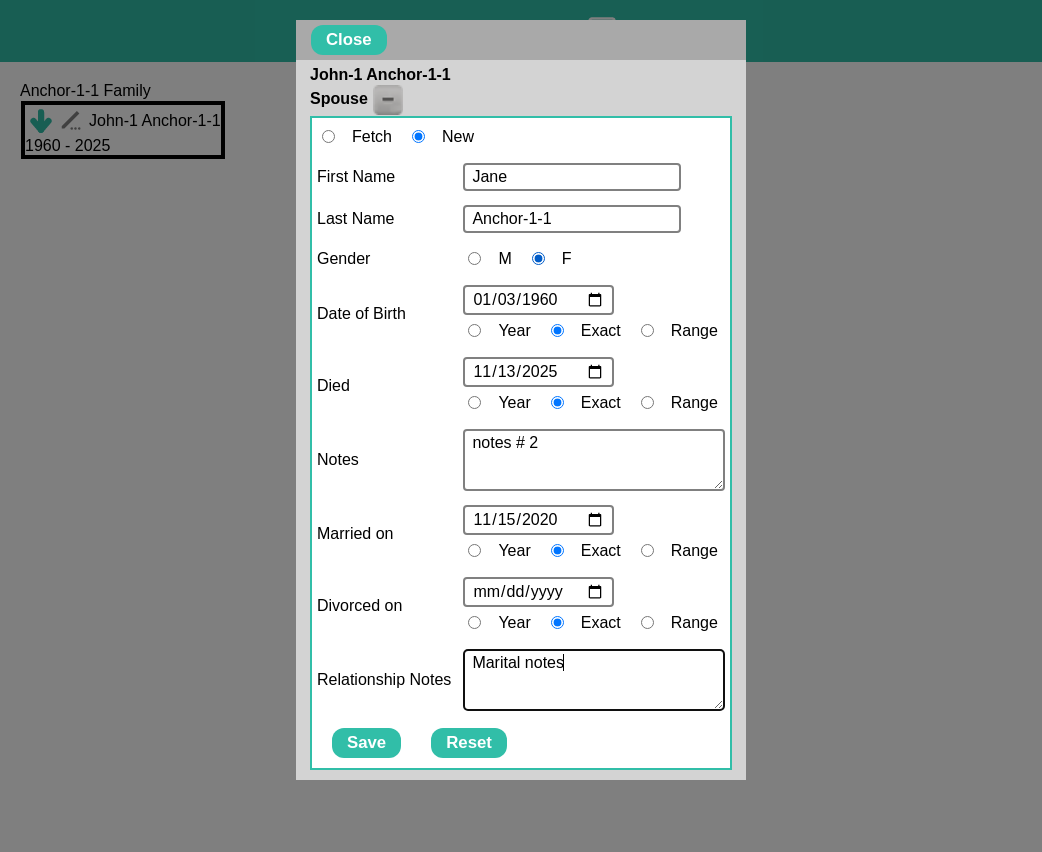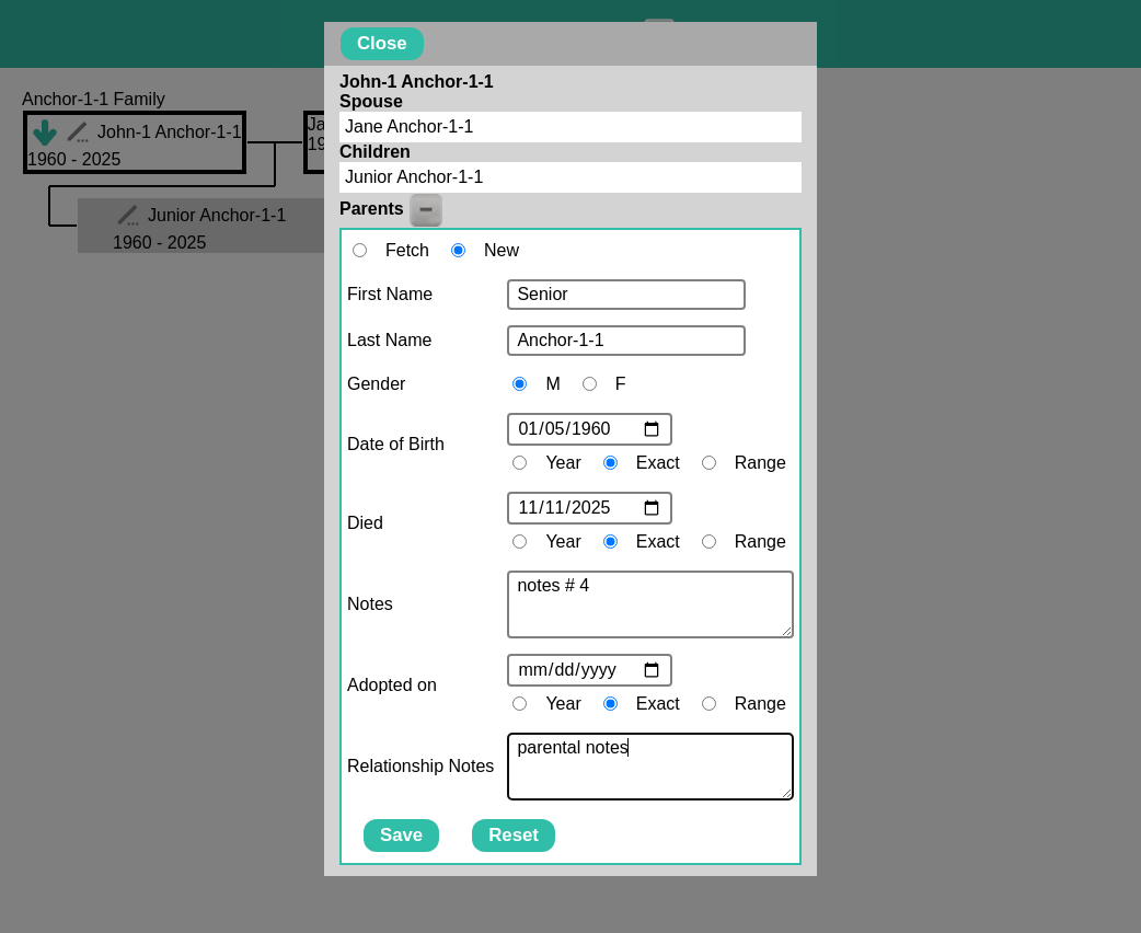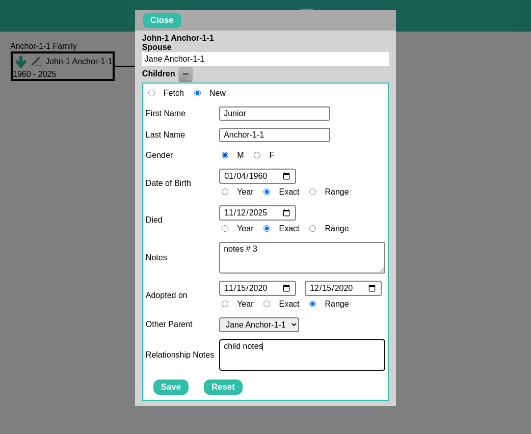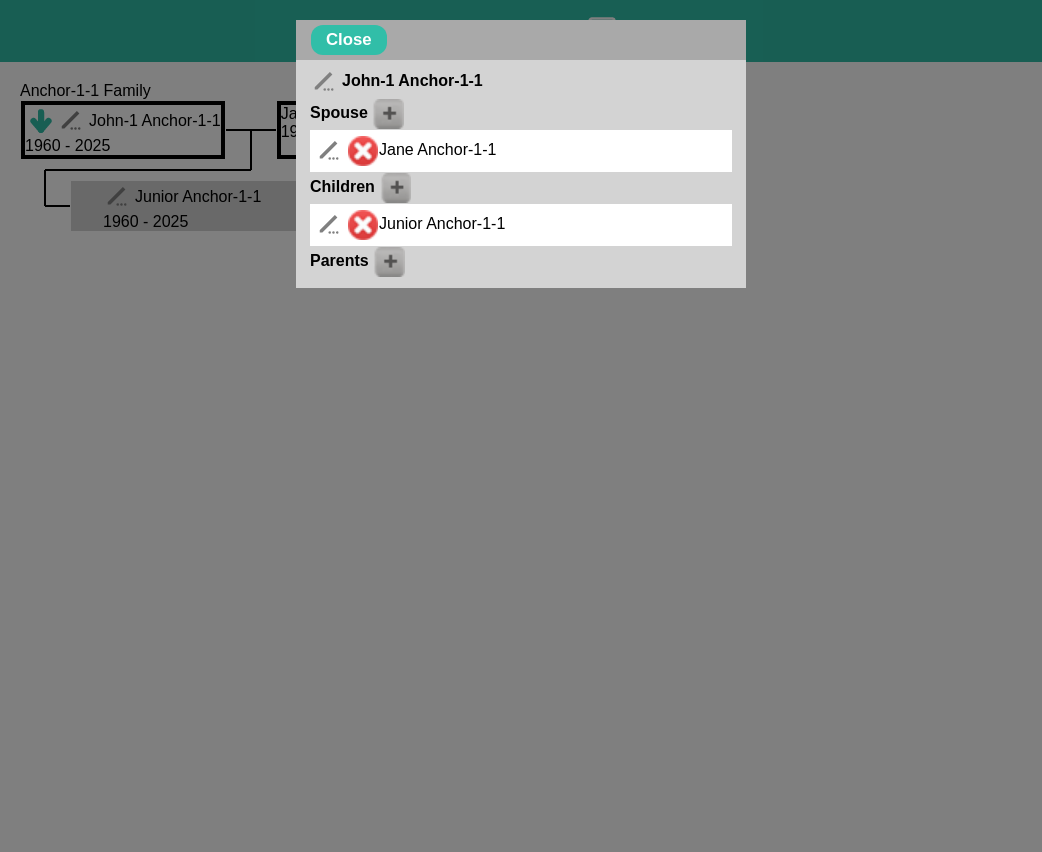 | GIVEN | A family patriach, 'John-1 Anchor-1-1' |